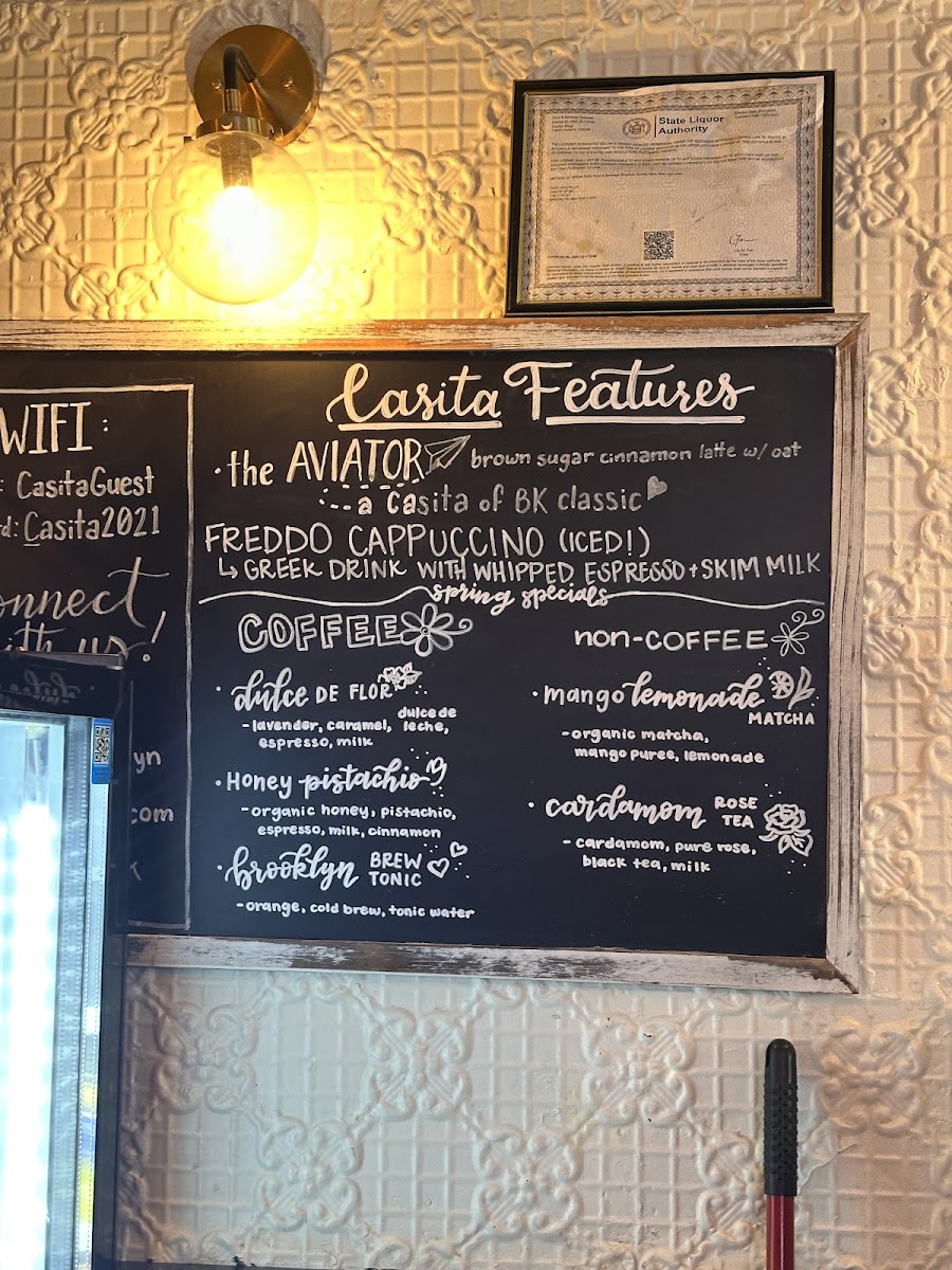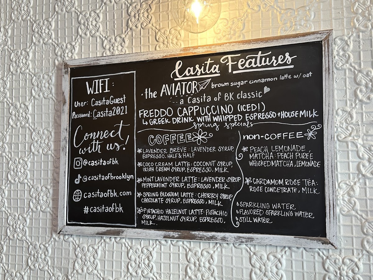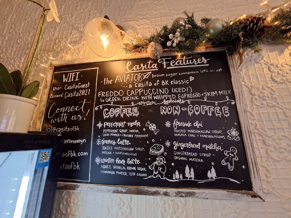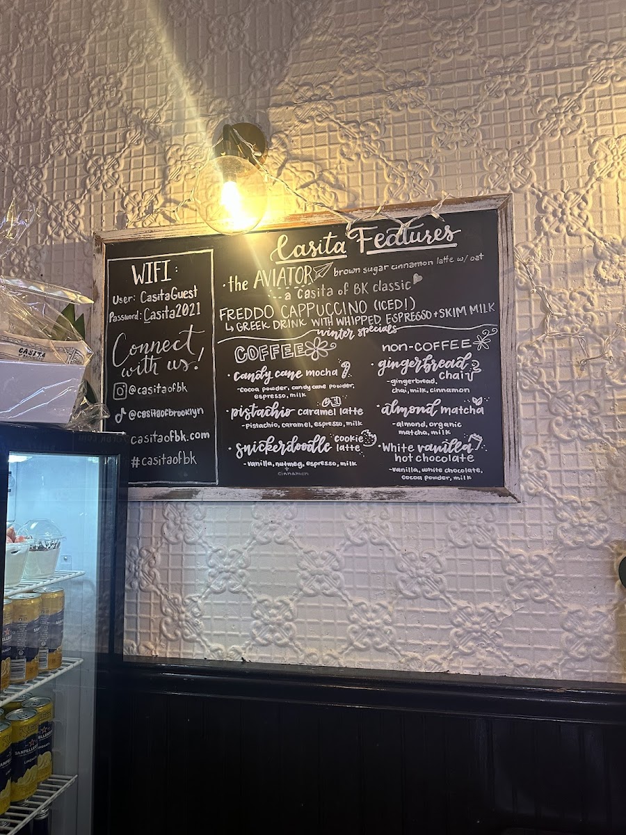 The drink menu is where Casita truly shines. The Casita Features-including the Aviator, Winter Bear Latte, Peppermint Mocha, S’mores Latte, and Fireside Chai-bring creativity and seasonal charm, offering comforting flavors that feel handcrafted rather than generic. For coffee purists, the Casita Espresso Features such as Cortado, Macchiato Espresso, Cappuccino, Flat White, and Latte cover all the classics, while the Casita Coffee lineup with 12 Oz Coffee, 16 Oz Coffee, Brooklyn’s Brew, and the Box Of Casita Brooklyn’s Brew caters well to both casual sippers and loyal regulars.